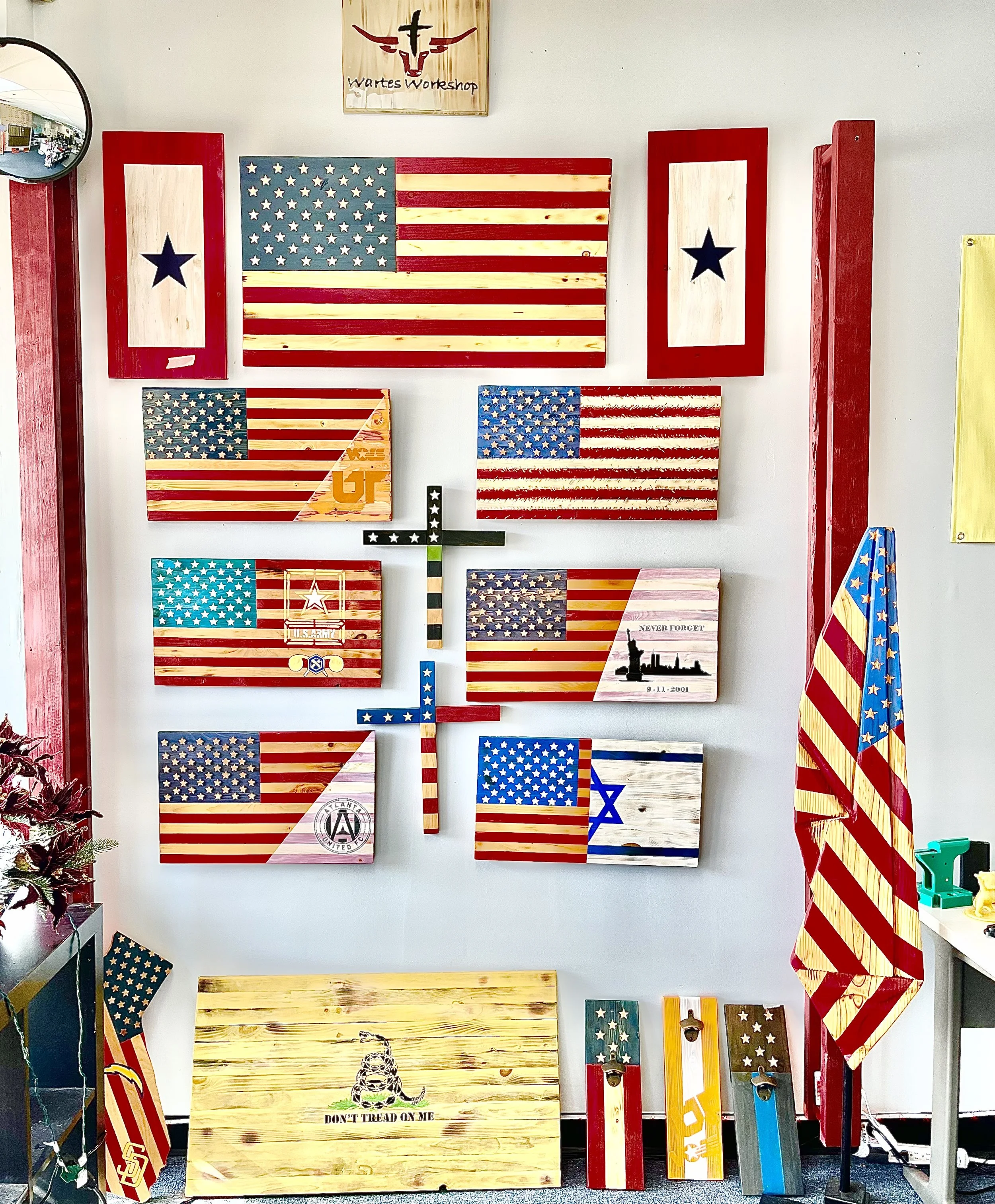Wartes Workshop, Handmade wooden flag signs. Custom orders available.